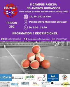 II Campus de Pascua C.B. Burjassot 2019. Disfruta estas pascuas de tu deporte favorito. ¡¡¡ APUNTATE YA !!! Pincha aquí para ver el documento de