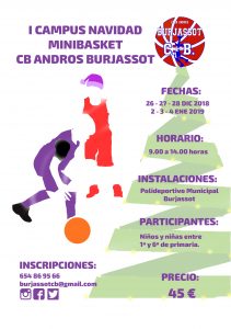 Presentamos el I Campus de Navidad del C.B. Burjassot que tendrá lugar los días 26,27,28 de Diciembre de 2018 y 2,3,4 de Enero de 2019.
